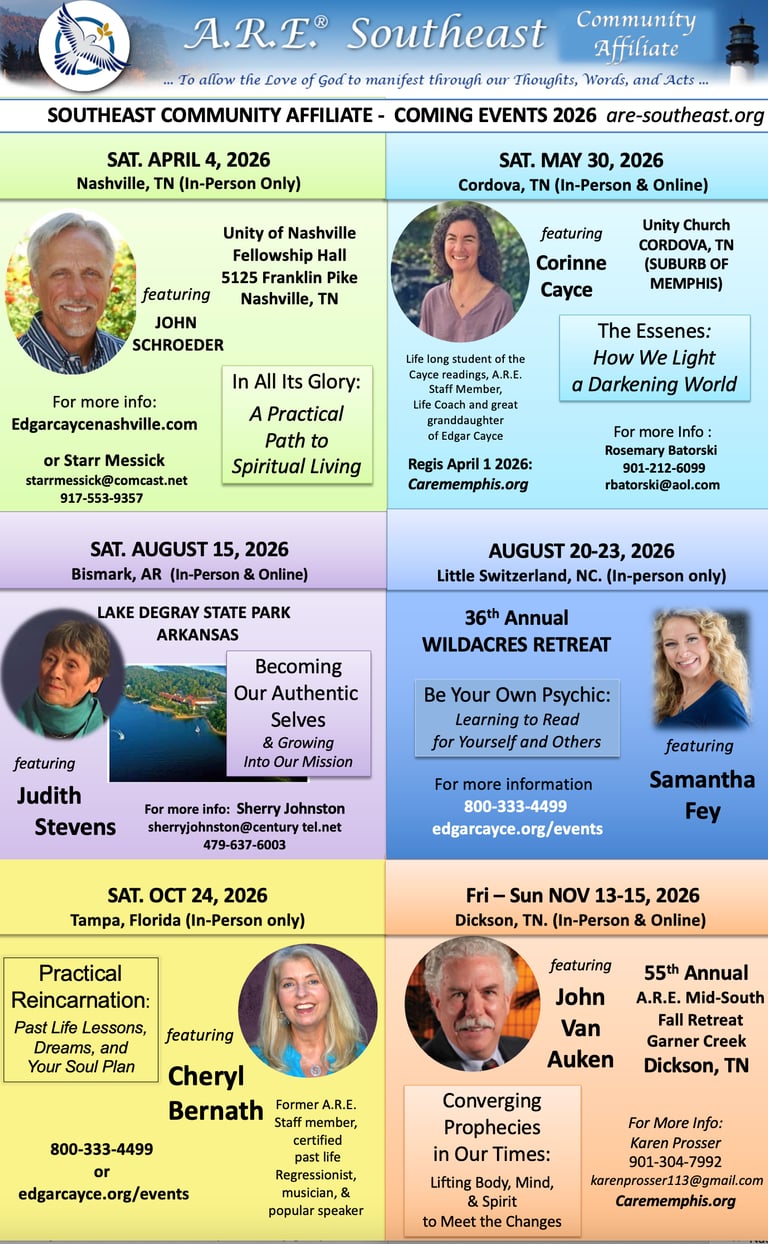I understand that since this program is sponsored by an affiliate of the A.R.E. (Association for Research & Enlightenment) my contact information will be shared with A.R.E. HQ in Virginia Beach unless I specify otherwise by contacting the event registrar, Starr Messick at starrmessick@comcast.net*