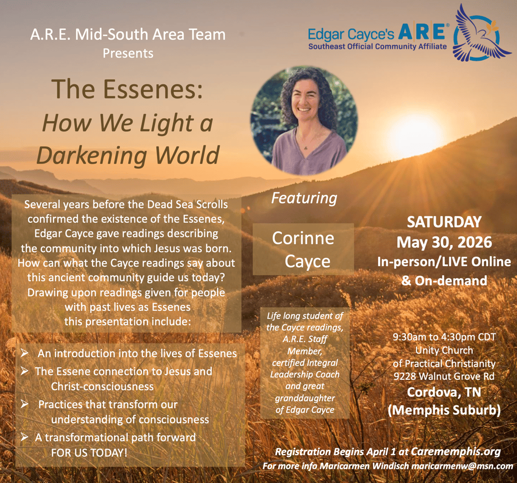 Carememphis.org is a website that supports the Association for Research and Enlightenment (A.R.E.) Mid-South Area Team, one of several local volunteer teams working within the 10-state A.R.E. Southeast Community Affiliate. The A.R.E. is an international non-profit organization whose mission is to create opportunities for profound personal change in body, mind, and spirit through the wisdom found in the Edgar Cayce material. Established in 1931, the A.R.E. headquarters are located in Virginia Beach, VA. For more information see: edgarcayce.org